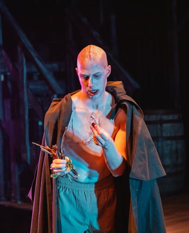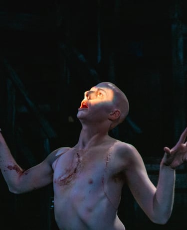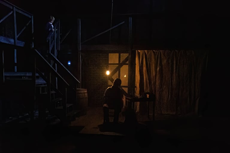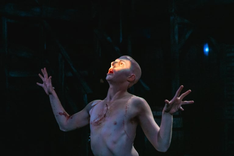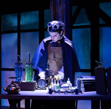 What distinguishes Nick Dear's Frankenstein from other interpretations is that it is told entirely from the perspective of the monster. It is then the role of the light design to visually represent the monster's experiences. Inspired by late 19th and early 20th century German Expressionist art, the design creeps between emotional and visual extremes.
