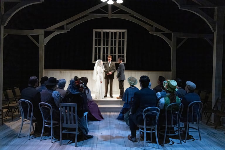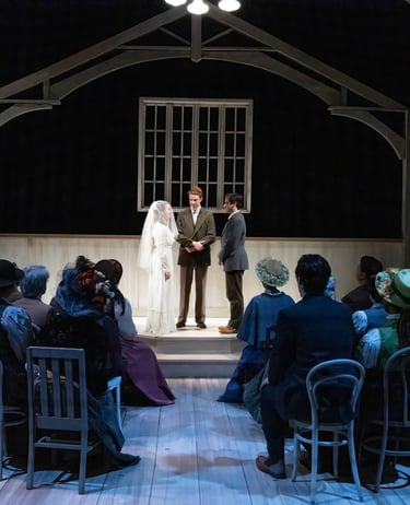 Our Town lays out a gentle but watchful look at the unimportant moments of unimportant people, without distinction between audience and performance. In order to emphasize that communal sameness, it became important to immerse the actors and audience in the same space as opposed to immerse the audience in the character's world.